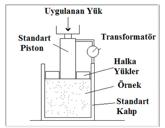 Küçük çaplı bir plakaya (yaklaşık 8cm çaplı) yük bindirilir. oturma saati yardımıyla (normalde 3 adet) yerde oluşan oturma miktarı ölçülür ve bunların ortalamaları alınır.